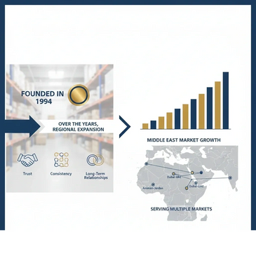 Founded in 1994, our journey began with a simple commitment: to deliver high-quality products built on trust, consistency, and long-term relationships. Over the years, we have grown into a regional company serving multiple markets across the Middle East,